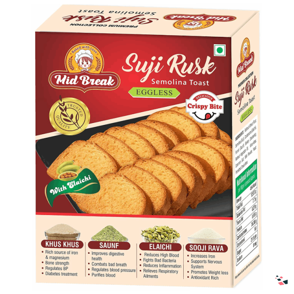 • MidBreak Rusks are full of Khas Khas, Suji, Saunf, and Elaichi.